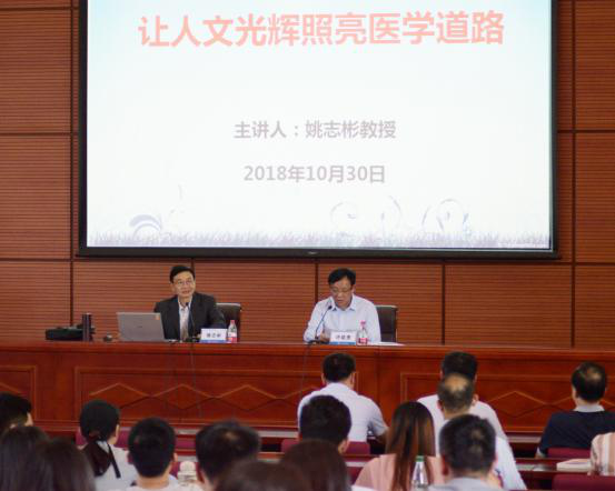 10月30日下午,公司名师名家讲坛116讲在大学城校区办公楼201会议室举行,十一届全国政协常委、原省政协副主席、广东省医学会会长、中山大学博士生导师姚志彬教授做题为“让人文光辉照亮医学道路”的主题演讲,许能贵副董事长主持。本次讲坛由教师发展中心主办,云顶国际vip.888和研究生院共同承办,200余名师生共聚一堂聆听学习。