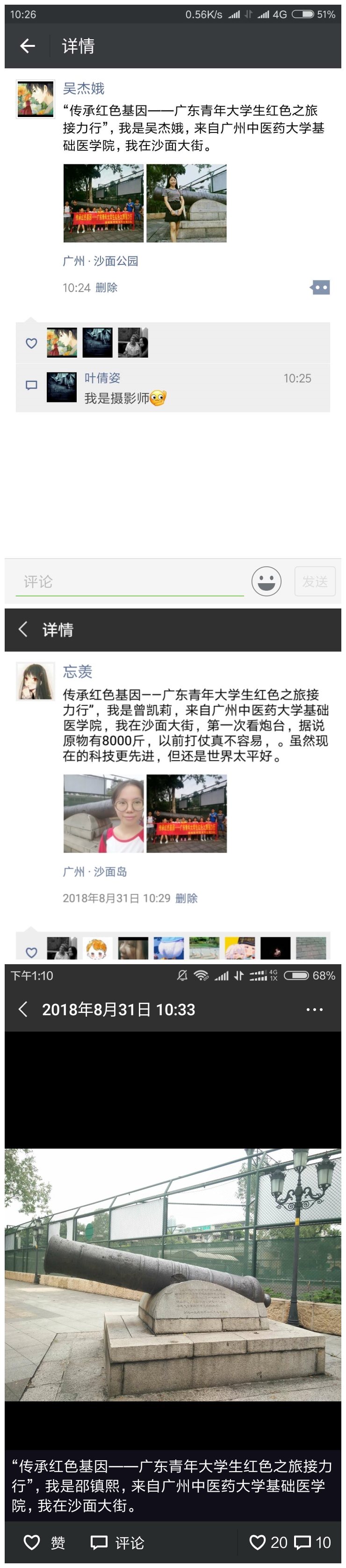 第一小组:在支部书记颜智维同学带领下,2017级中医学专业的同学冒着风雨到黄花岗七十二烈士陵园缅怀先烈,来到中共三大会址纪念馆找寻国共第一次合作的源起,走进省博了解广东人类文明的前世今生。第二小组:由支部副书记黎伟康同学带队2016级医学检验技术参观农讲所、烈士陵园、广东革命历史博物馆,了解广州在新民主主义革命时期的光辉历程。第三小组:组织委员卢雪银同学带领2017级生物技术专业同学登高越秀山“五层楼”参观广州博物馆,越秀区博物馆,寻找隐藏在北京路千年古道背后“千年商都”的奥秘;走进广州起义纪念馆,寻找起义路鲜为人知的红色故事。第四小组:2016级生物技术专业同学在支部宣传委员谢媛媛同学带领下参观了沙面岛、中华全国总工会旧址、孙中山大元帅府纪念馆及廖仲恺何香凝纪念馆,探寻中国民主革命先驱在广州的印记,站在省港大罢工历史事件的发生地体会青年与时代担当的关系。第五小组为支部纪律委员夏里热亚•肖开提同学和2016医学检验技术同学走进辛亥革命纪念馆、黄埔军校旧址感受那些年为了国家独立、民族解放而投笔从戎的热血青年的家国情怀,走进广州市国家档案馆了解广州作为改革开放前沿在40年中成长的印记与成就,增进对广州的了解和热爱。