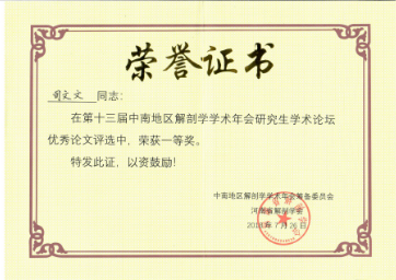 云顶国际vip.888人体解剖学系研究生在“第十三届中南地区解剖学学术年会”“研究生论坛”中斩获佳绩