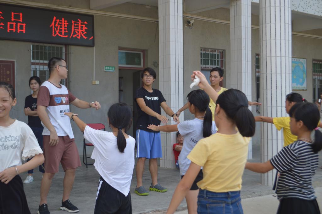 本次志愿活动主要分为义教、健康卫生宣传以及调研活动三大模块:本次义教活动开设了丰富多彩的课程,在手工课上,孩子们热情高涨,灵巧的小手折出了美丽灿烂的樱花;在美术课上,用简单的蜡笔描绘出各自心中美好而色彩斑斓的世界;在音乐课上,用稚嫩的嗓音认真吟唱着令人陶醉的歌曲;在体育课上,围成大圆圈与老师们一起追逐嬉闹;在义教活动的总结大会,小老师们带着孩子们酣畅淋漓地玩起了游戏,并为孩子们准备了丰厚的奖品,使得义教最后的时光高潮迭起,最精彩的游戏是想办法将废报纸叠高,小小的教室洋溢着大家的热情。健康卫生宣传活动在村里的老榕树下开展,身着白大褂的志愿者为前来的村民进行简单按摩;与此同时,我们还提供了贴耳穴的医疗服务活动;还现场教授并宣传有益身心的八段锦。
