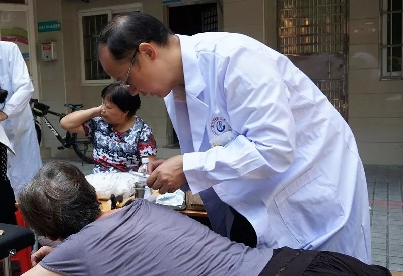 义诊当天,张壮涛老师在详细了解病情的基础上,因人施策地使用小针刀或针灸为居民缓解身体肌肉长期劳损的酸胀病痛。研究生们根据居民的性别、年龄及身体情况进行了拔火罐、贴耳穴、推拿等不同的中医诊疗服务。本科生们则为居民提供量血压、个人情况登记等服务。居民们在接受完治疗后皆表示腰痛与肩痛等慢性疼痛症状有所缓解,为广中医师生的义诊服务点赞。