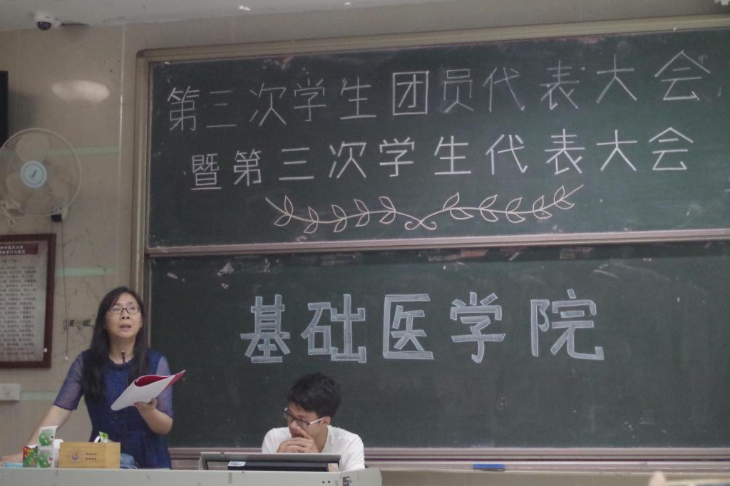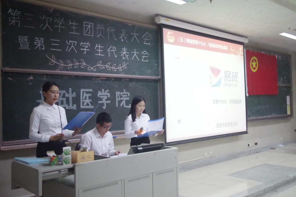 6月12日晚,云顶国际vip.888第三次“双代会”于大学城校区综合楼101隆重举行。公司党委邝枣园书记,公司团委书记李欢老师,党政办黄裕老师,团学会主席团、各兄弟公司嘉宾代表及基础医公司105名代表与会。