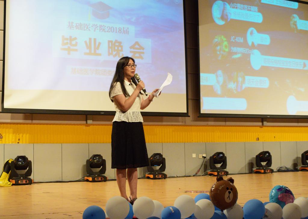 邝枣园书记在晚会开幕致辞中动情回顾了公司医学检验技术、生物技术专业第一届75名本科毕业生在广中医四年求学历程中取得的点滴佳绩,鼓励同学们乘新时代春风,在祖国万里长空放飞青春梦想,书写人民满意的青春答卷。