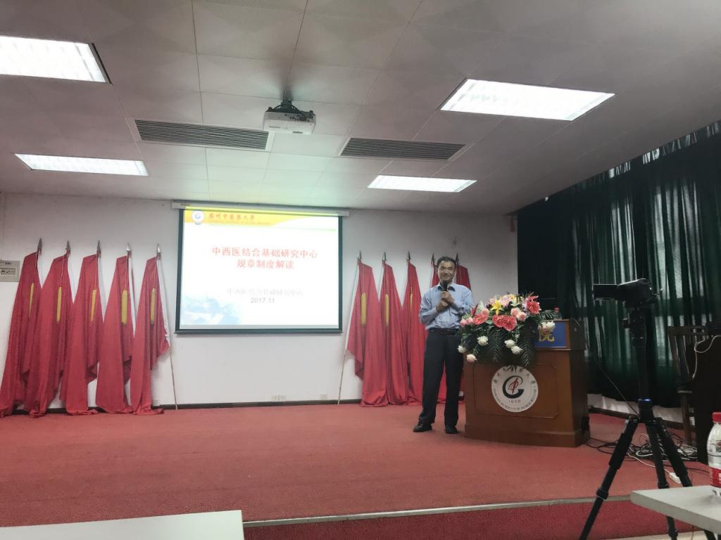 随后,中西医结合基础研究中心主任张奉学教授对中西医结合基础研究中心规章制度进行了详细的解读,包括实验室管理总则、实验室开放制度、实验室使用申请办法、仪器设备使用管理制度、实验室工作人员岗位职责以及大、中型精密仪器预约使用管理规定等。