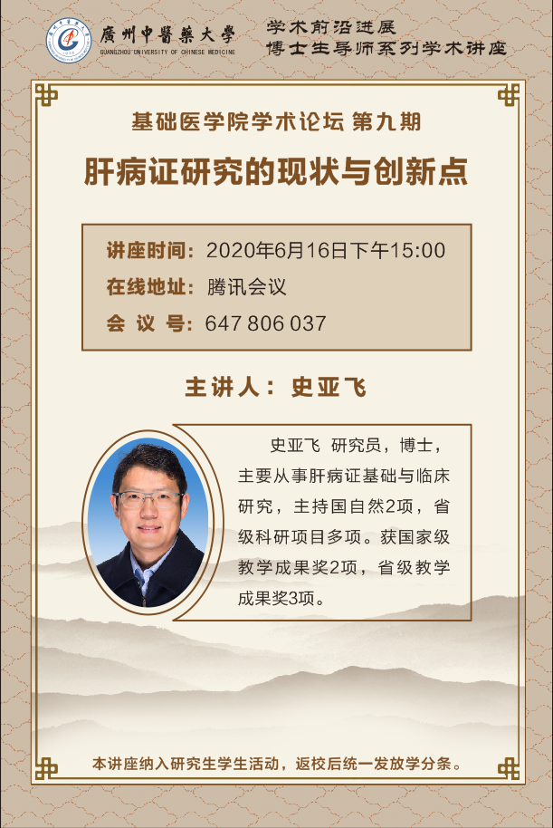 云顶国际vip.888学术论坛 第九期 《肝病证研究的现状与创新点》主讲人:史亚飞